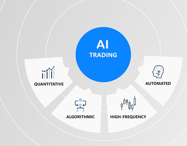 AI trading uses machine learning, market sentiment analysis and complex algorithmic predictions to analyze millions of data points and execute trades to maximize profits. The different types of AI trading are: quantitative trading, algorithmic trading, high-frequency trading and automated trading. All aim to predict future price trends.